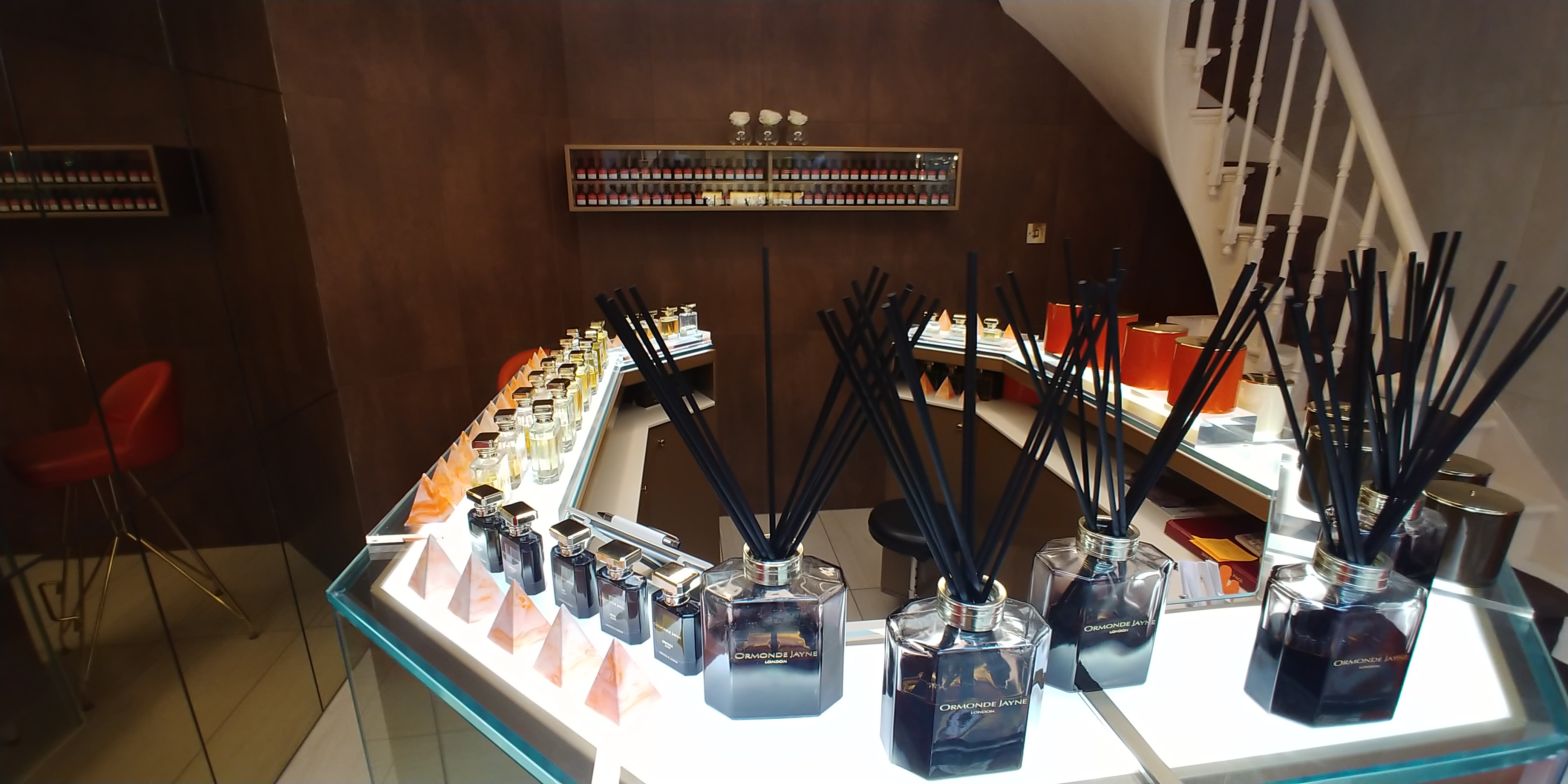 This compact store seems to have a principle of attentiveness to each customer, which also means that an unguided tour is nearly impossible. Each fragrance is displayed by an orange-white-swirly pyramid cone, and some fragrances have different options for concentration. At the back is a cabinet showcasing ingredients used in Ormonde Jayne’s perfumes.