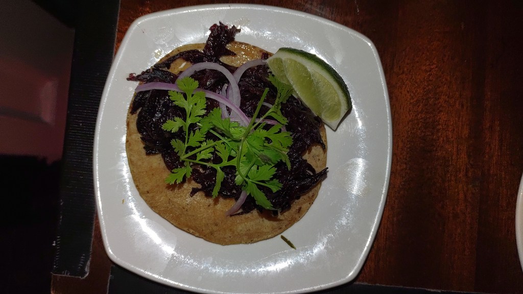On my trip to New York City this past weekend, I got to try a hibiscus taco at a Mexican restaurant in SoHo called Casa Mezcal. Admittedly not very photogenic, it was richly flavored and the taste and texture reminded me of jackfruit, another plant sometimes used as a creative meat substitute in hipster dishes. I might have seasoned it more lightly if I’d had a say, but I’m all for it.