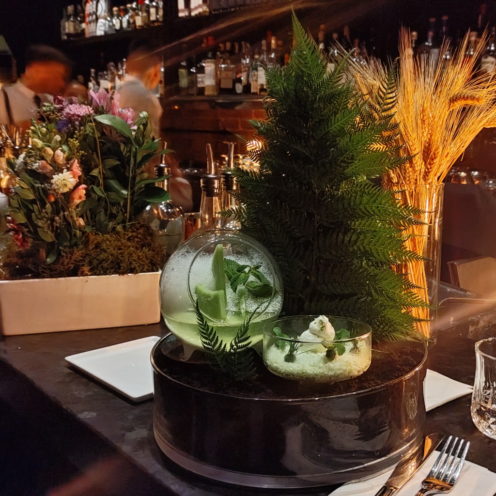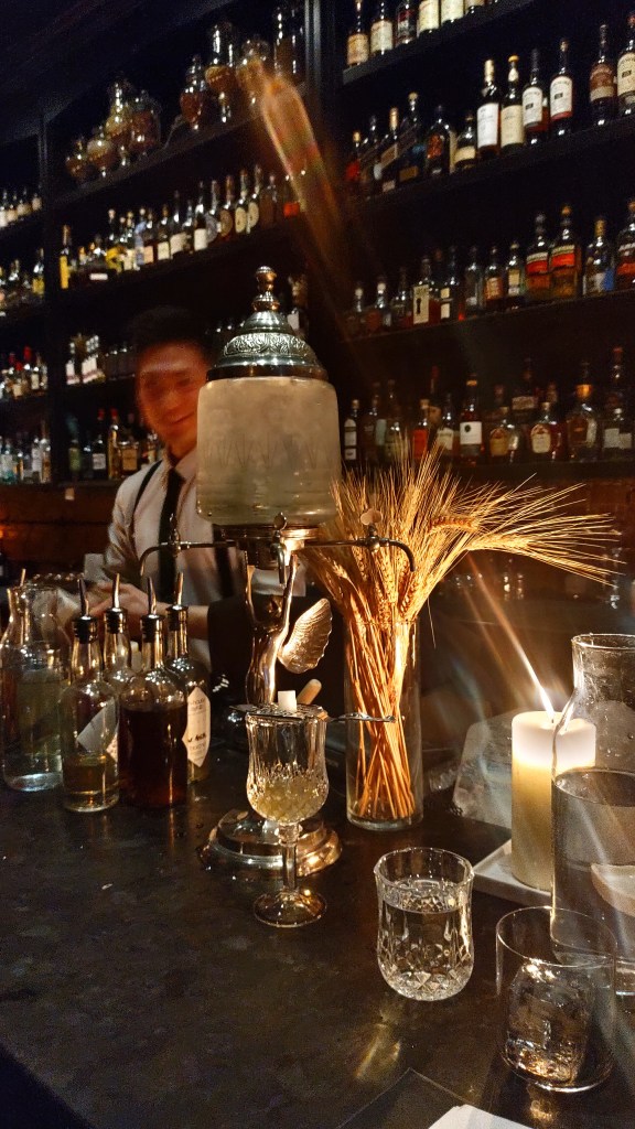 How could I resist these descriptions? “Old World”: A Parisian parfumerie in liquid form. Exceptional aromatics of antique wood, herbaceous Davana, soft smoke and untouched attic. The flavour offers beautiful depth with lingering oak and roasted vanilla. I first fell for “Sunset Rose” for its ingredient list of Mezcal, rose-infused Aperol, lime leaf, lillet, thyme, dill bitters, violette; it did not disappoint.
