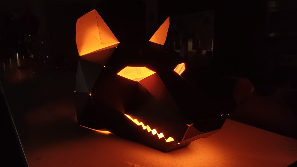 Halloween was a quiet affair for us, as it tends to be. Perhaps the older I get, the more I appreciate how it brings people together in a bit of costumed fun. So, although we did not go out, we participated in the spirit of it by repurposing the paper masks my other half had made a few years ago.