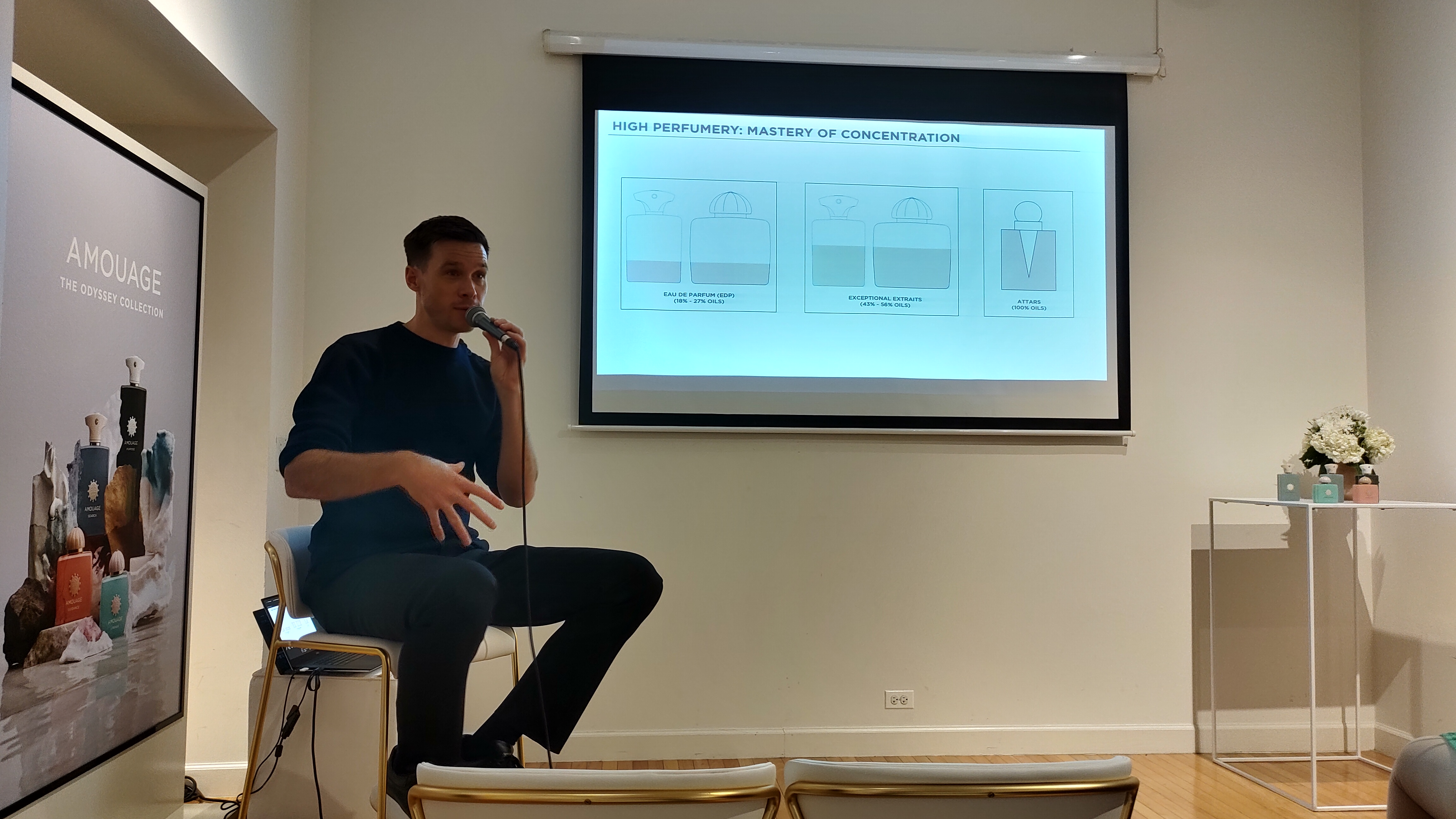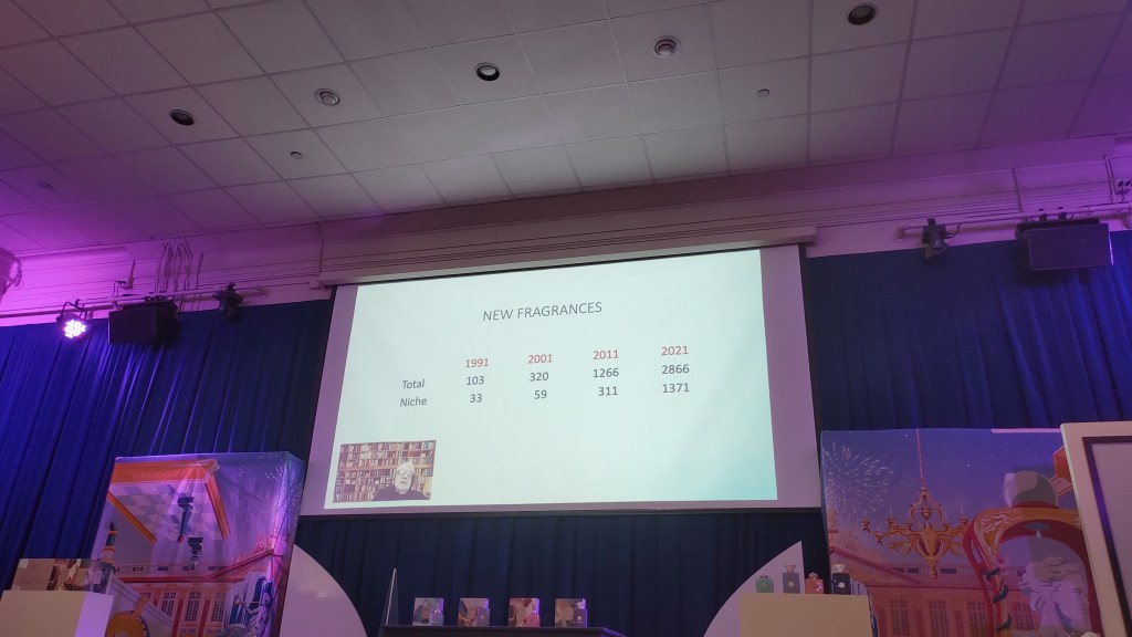 As Amouage was the Diamond Sponsor, they also held a masterclass, workshop, and “meet & greet” sessions with perfumers Alexis Grugeon, MacKenzie Reilly, and Cécile Zarokian over the 2 days. This masterclass did not include samples—rather, the new Odyssey Escape collection (launching in 2023) was introduced with blotters handed to each of us.
