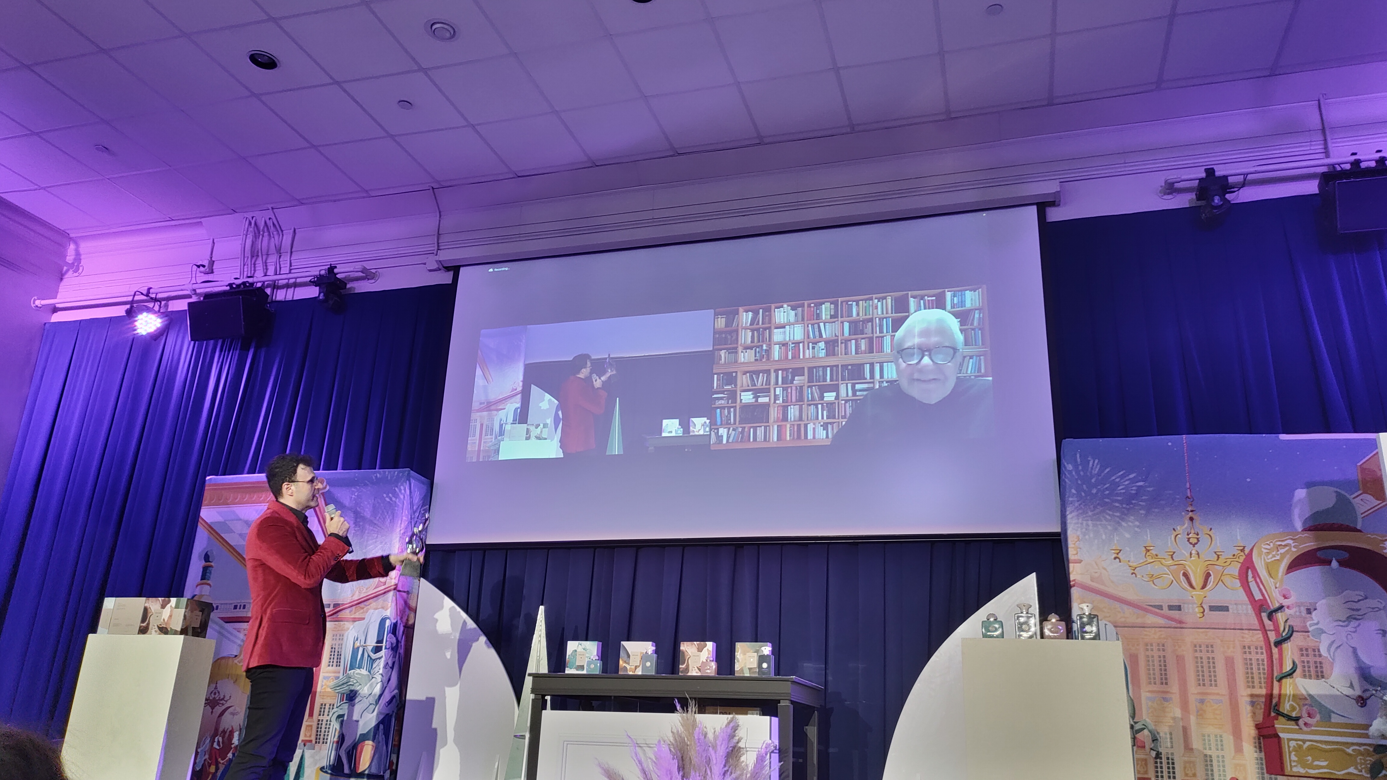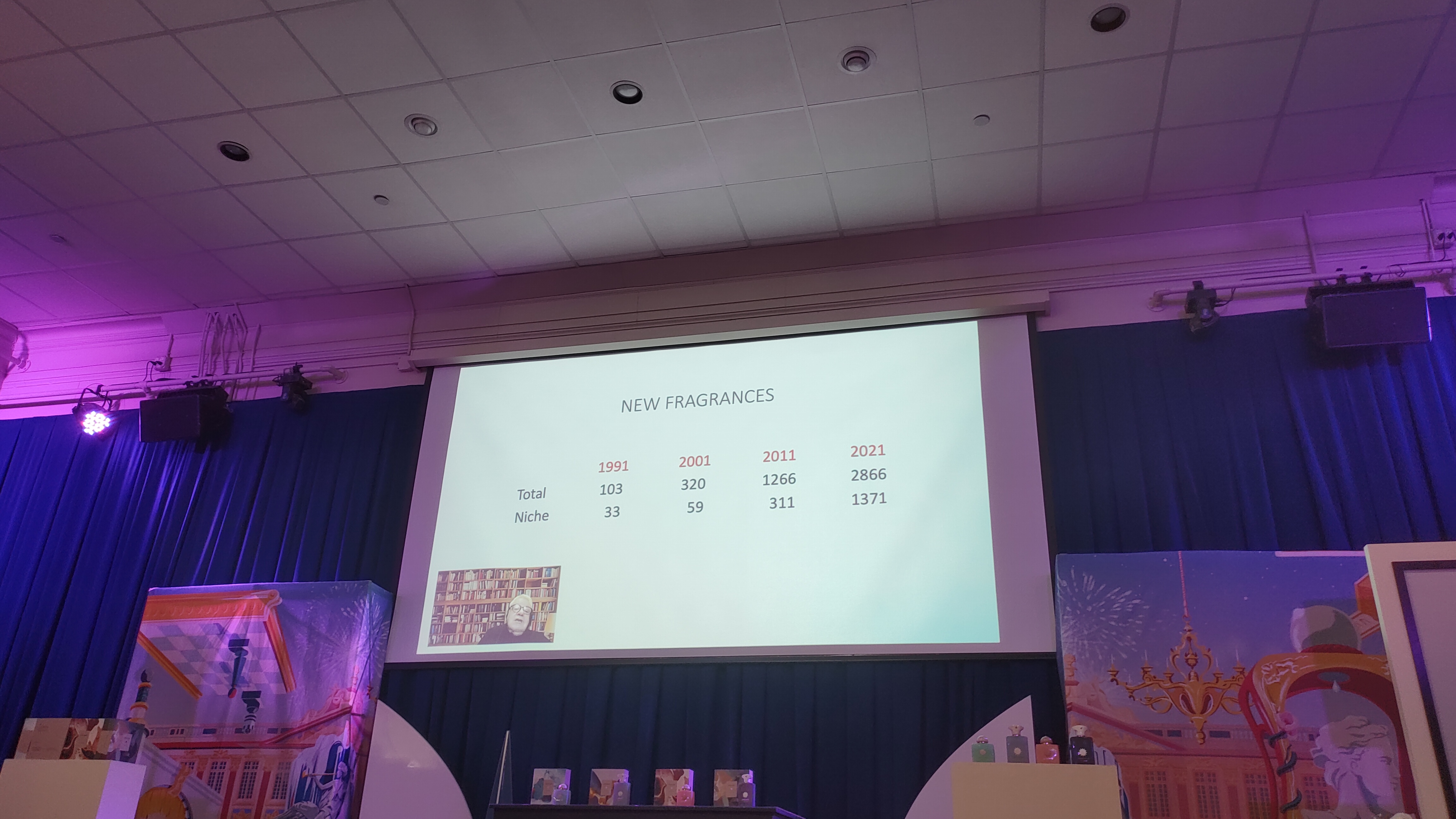 Michael Edwards dialed in from Paris to educate us on a history of perfumery as some background to his Perfume Legends books. After answering a few audience questions about the olfactory classification system, he was presented with a Lifetime Achievement award by host Max Forti.