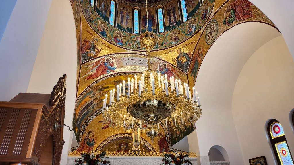 Plovdiv is home to many beautiful, ornate churches; at one of the smaller ones, a woman was offering chocolates to everyone around, and we also learned that this is customary when someone has a birthday, to treat others.