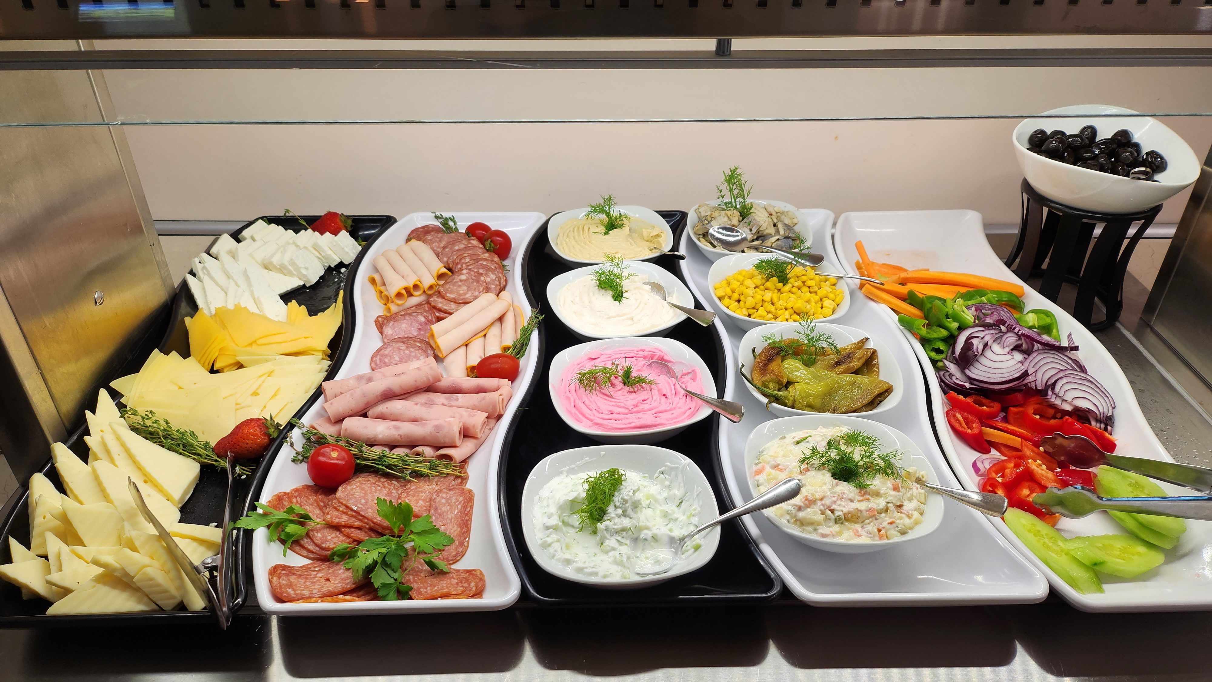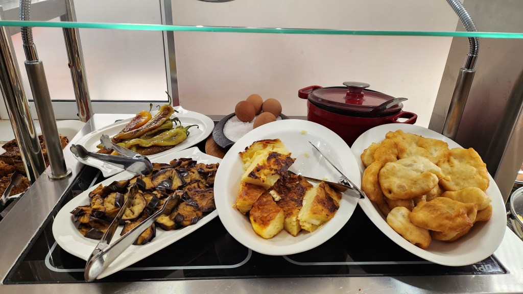 I woke up quite hungry, as I’d been too exhausted for dinner the previous night. The breakfast buffet at our hotel was decent and varied. The roasted long peppers became my new favorite breakfast item.