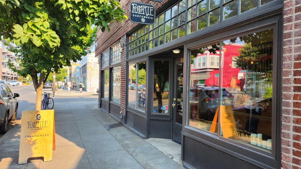 What an apt segue to the establishment that claims to be the world’s largest independent bookstore, Powell’s Books. The first two times I walked by it… frankly, I didn’t give it any notice. The third time, the name suddenly rang a bell. Was this the bookstore that had commissioned a signature scent?