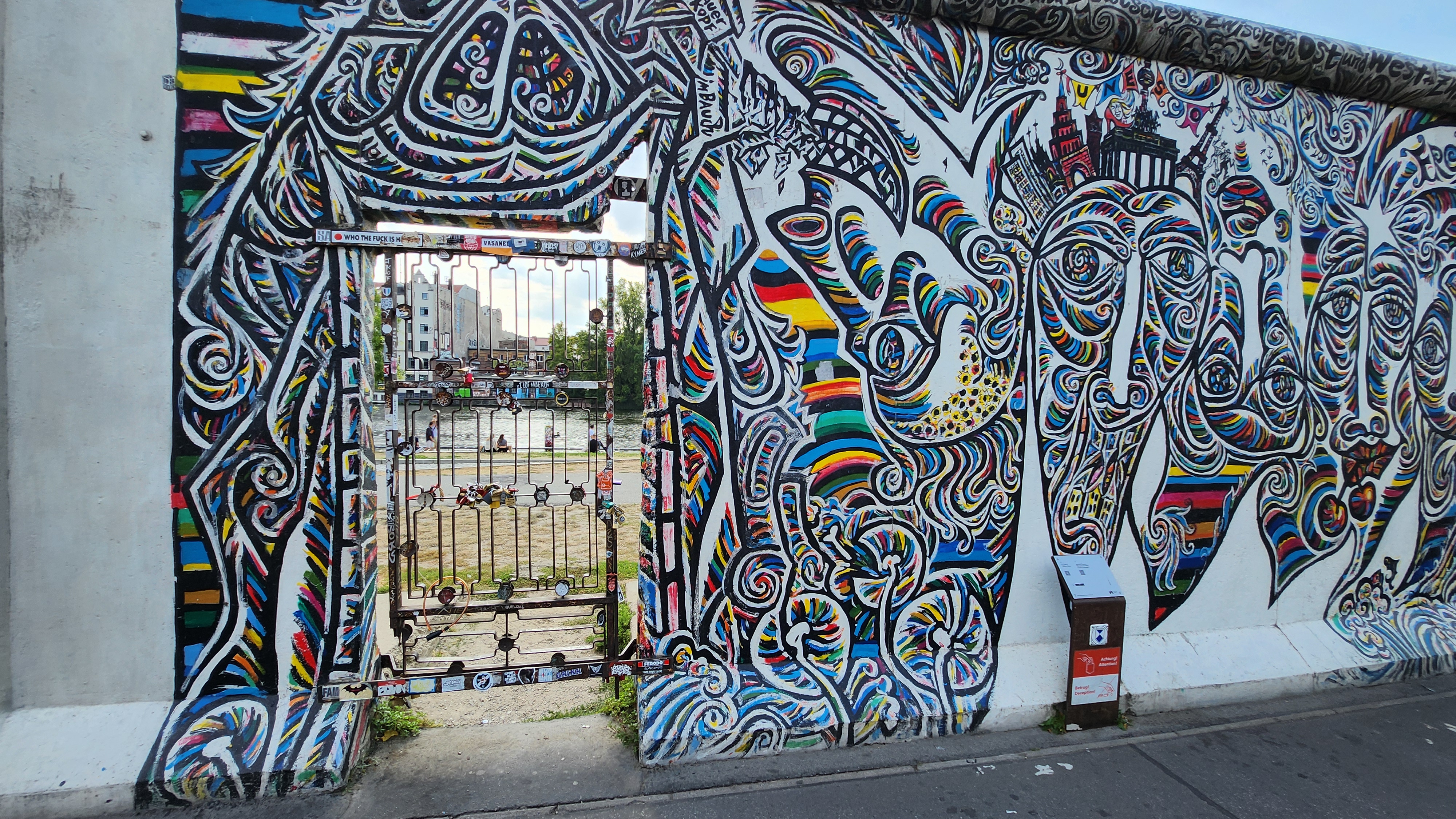 The next day, we visited parts of the Wall, starting from the longest continuous stretch that is now the East Side Gallery. It is covered with murals by street artists from 21 countries who painted them in 1990, expressing the hopes, feelings, and fears of the time.