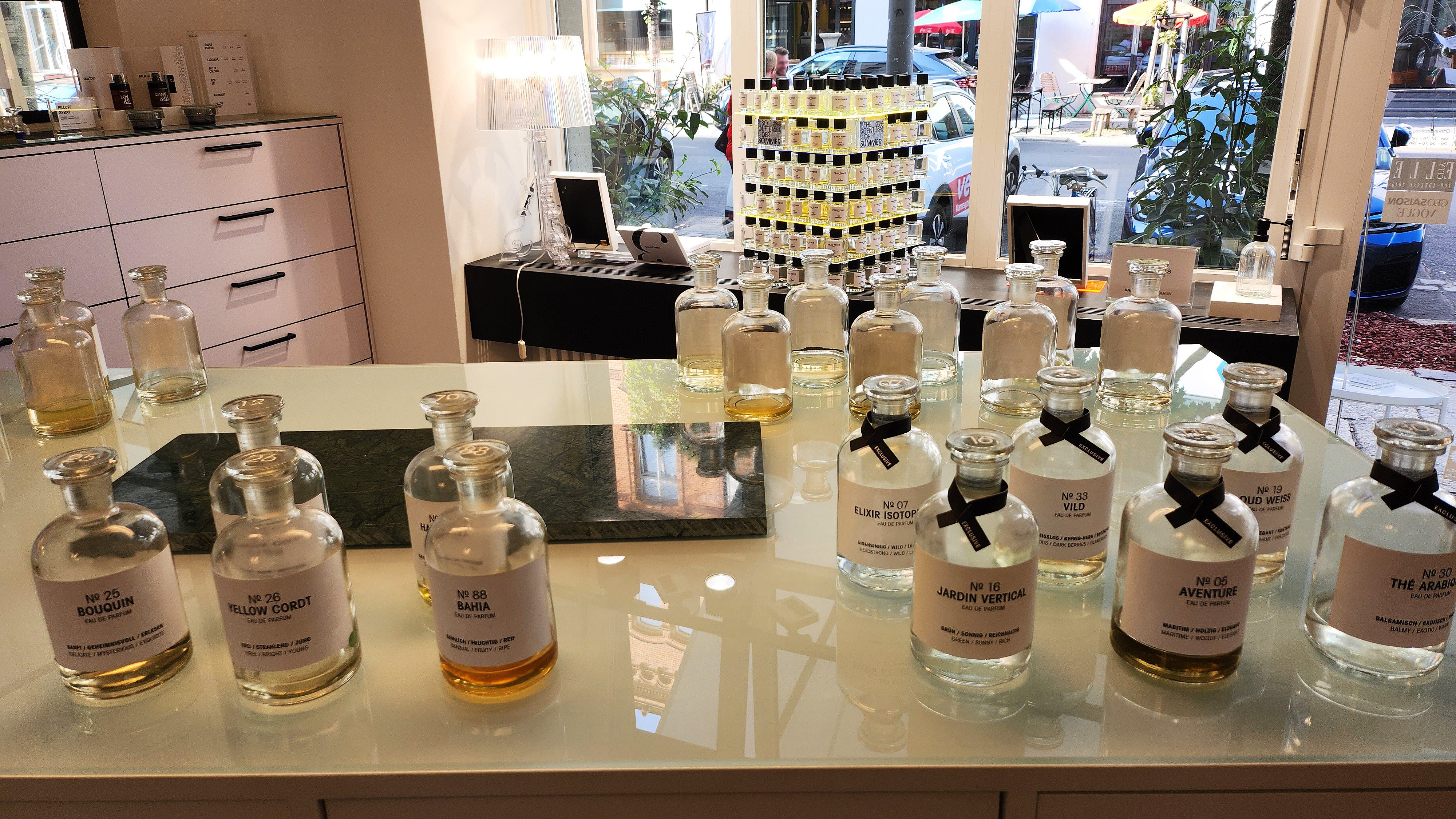 We also went to a Frau Tonis boutique, where the perfumes were arranged roughly by fragrance family on a table and visitors could sniff the apothecary-style bottle caps ourselves (under the watchful eye of the sales associate).