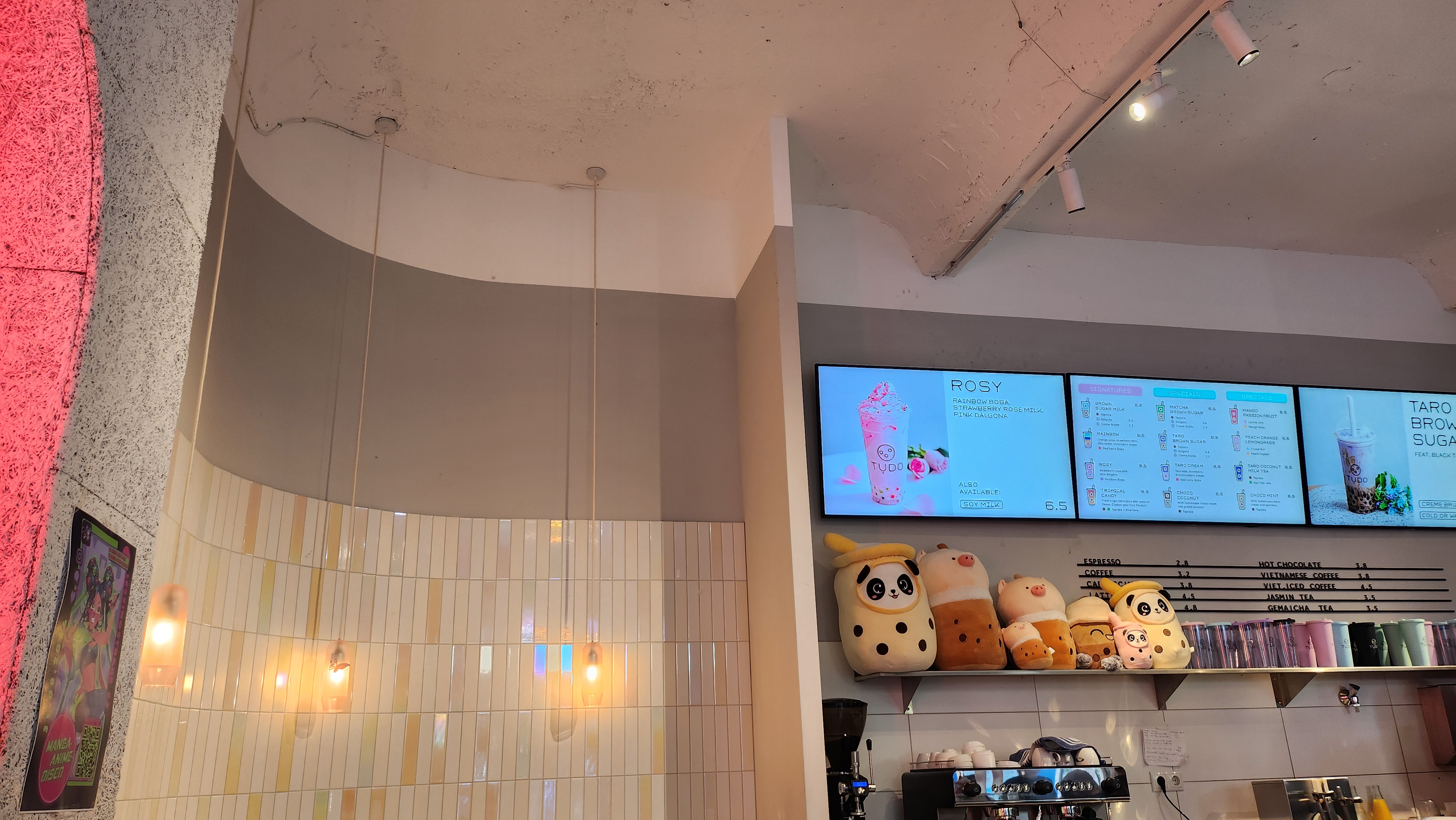 Afterwards, thirst drove us to a bubble tea shop in Alexanderplatz, where I had possibly the best bubble tea in my life—”Rosy,” with strawberry rose milk and rainbow boba, which pops and releases a sweet liquid. This version of boba is so refreshing compared with the dense, chewy tapioca balls I’m used to.