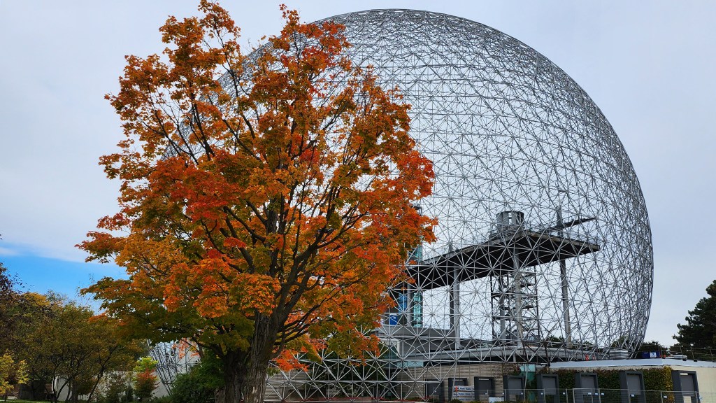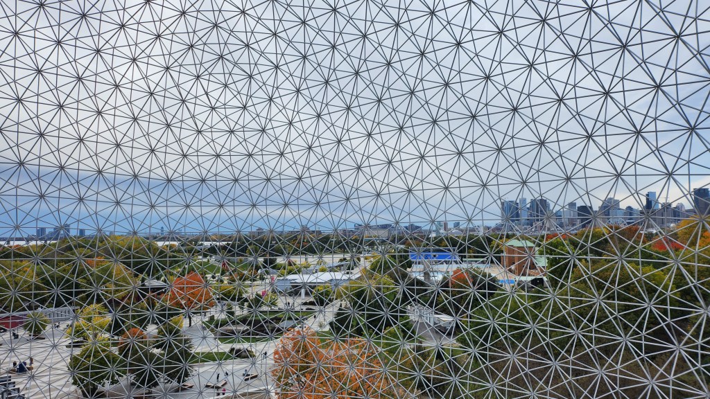 The next day, we went to the Biosphere, a geodesic dome that now houses a museum dedicated to the environment. It was designed by Buckminster Fuller and Shoji Sadao and originally built with acrylic panels in the exterior, but those burned down within 15 minutes in a fire in 1976. The Biosphere has remained an open steel skeleton structure since, allowing a wind turbine to provide much of the power for operations.