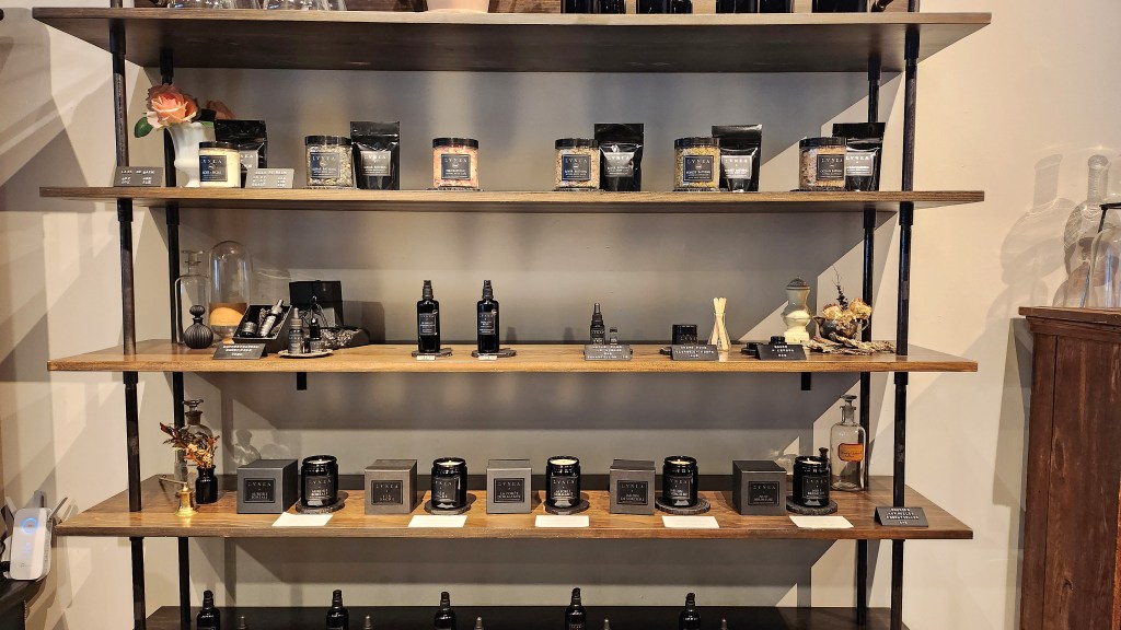 This time, we made a purposeful visit to LVNEA, a botanical perfumery and apothecary. Usually, if I get to know a perfumer or store owner, it’s because I’ve been to their shop/studio/blog, etc. In this case, it was the opposite—we had met the perfumer and founder of LVNEA, April Lea, at an activity last year, so when we decided to go to Montréal, we made a plan to stop by to see her and the boutique.