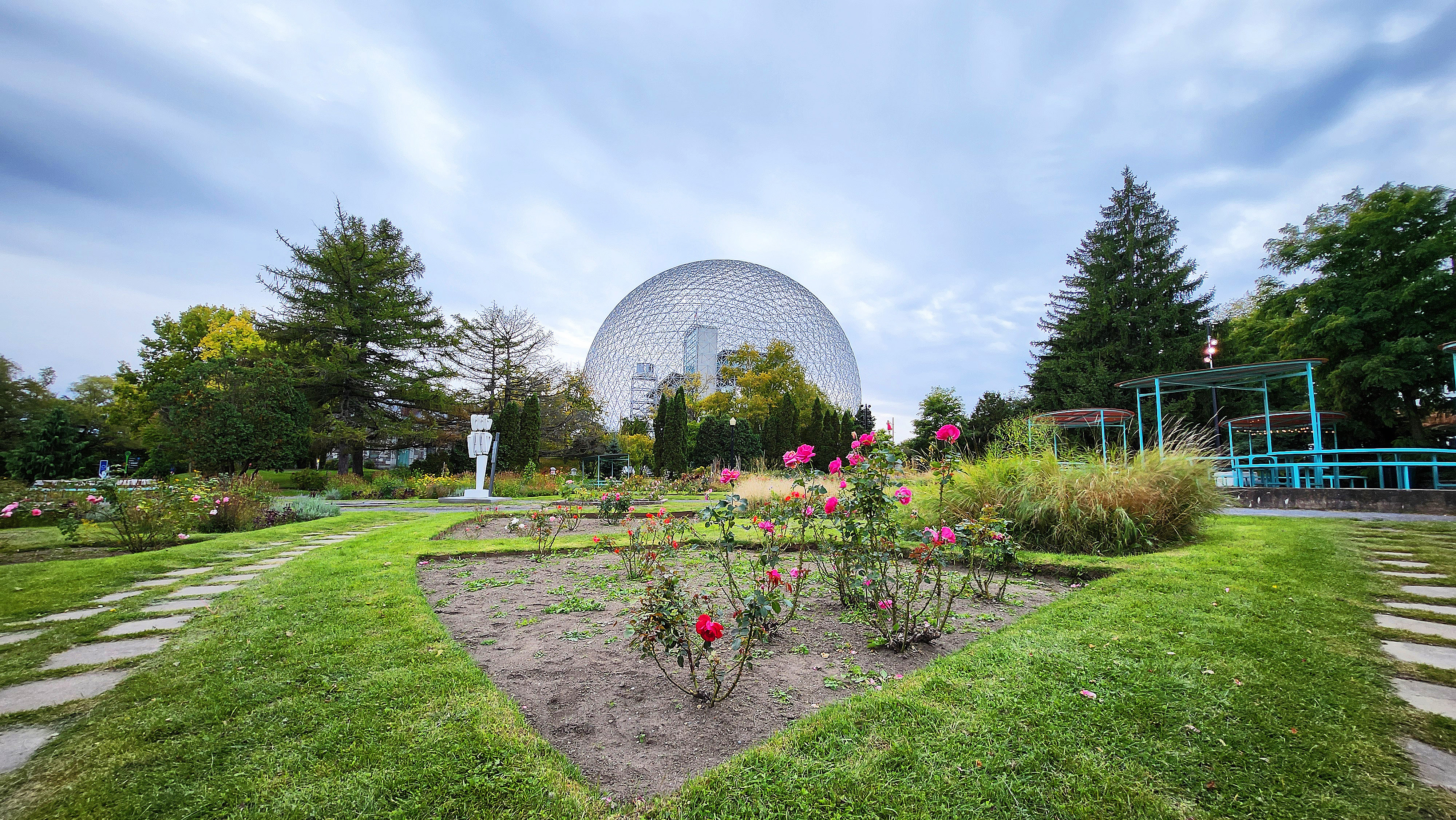 The next day, we went to the Biosphere, a geodesic dome that now houses a museum dedicated to the environment. It was designed by Buckminster Fuller and Shoji Sadao and originally built with acrylic panels in the exterior, but those burned down within 15 minutes in a fire in 1976. The Biosphere has remained an open steel skeleton structure since, allowing a wind turbine to provide much of the power for operations.