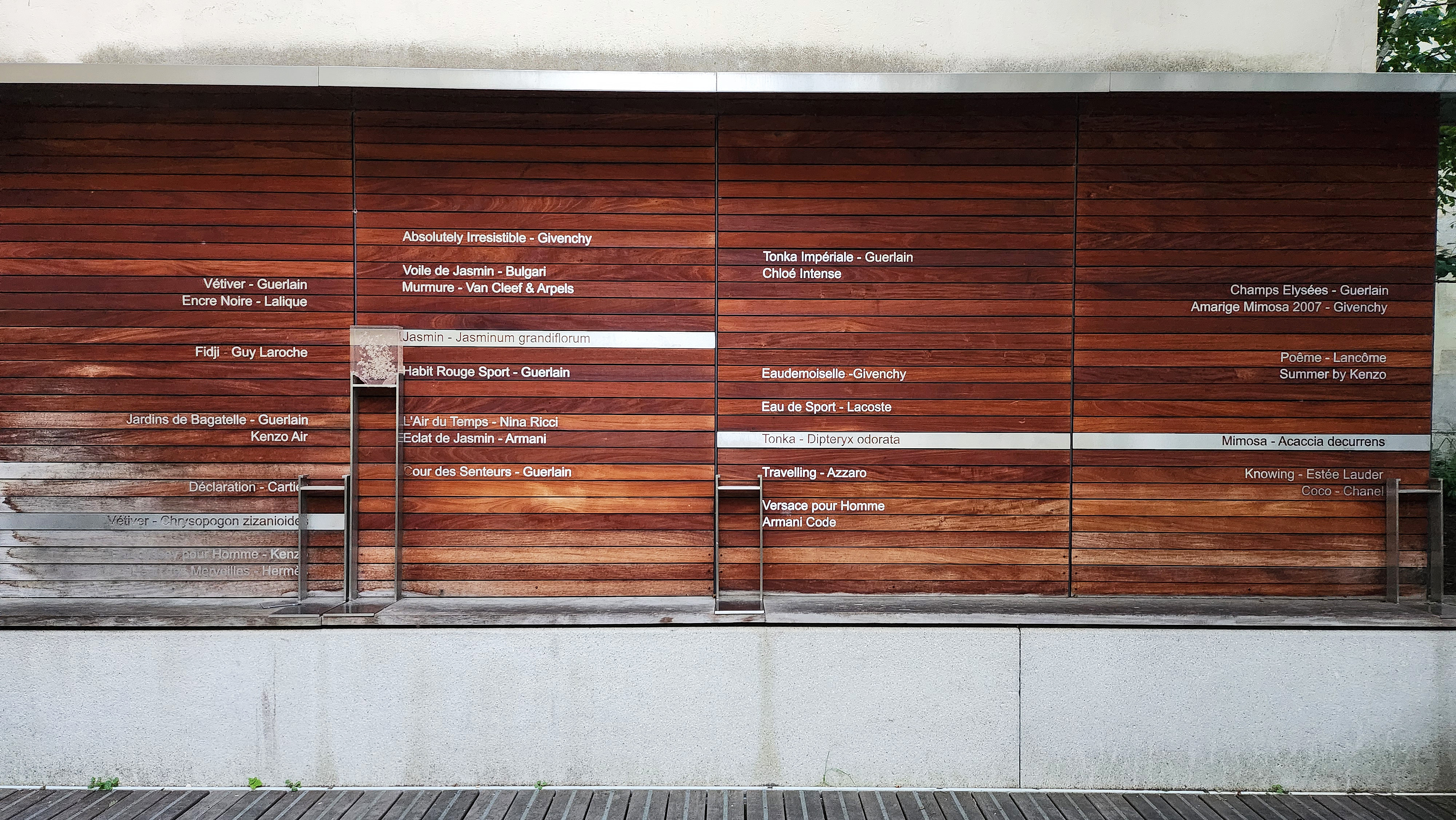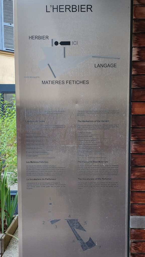 We started in Versailles—not the palace, which we’ve toured before, but the town itself. The Osmothèque didn’t have any public events while we were there, but we walked around La Cour des Senteurs (The Scent Courtyard), which opened in 2013 to showcase the culture of perfume. It didn’t feel very well maintained, and the roses in the Roseraie des Illusions were mostly withered in the heat wave.