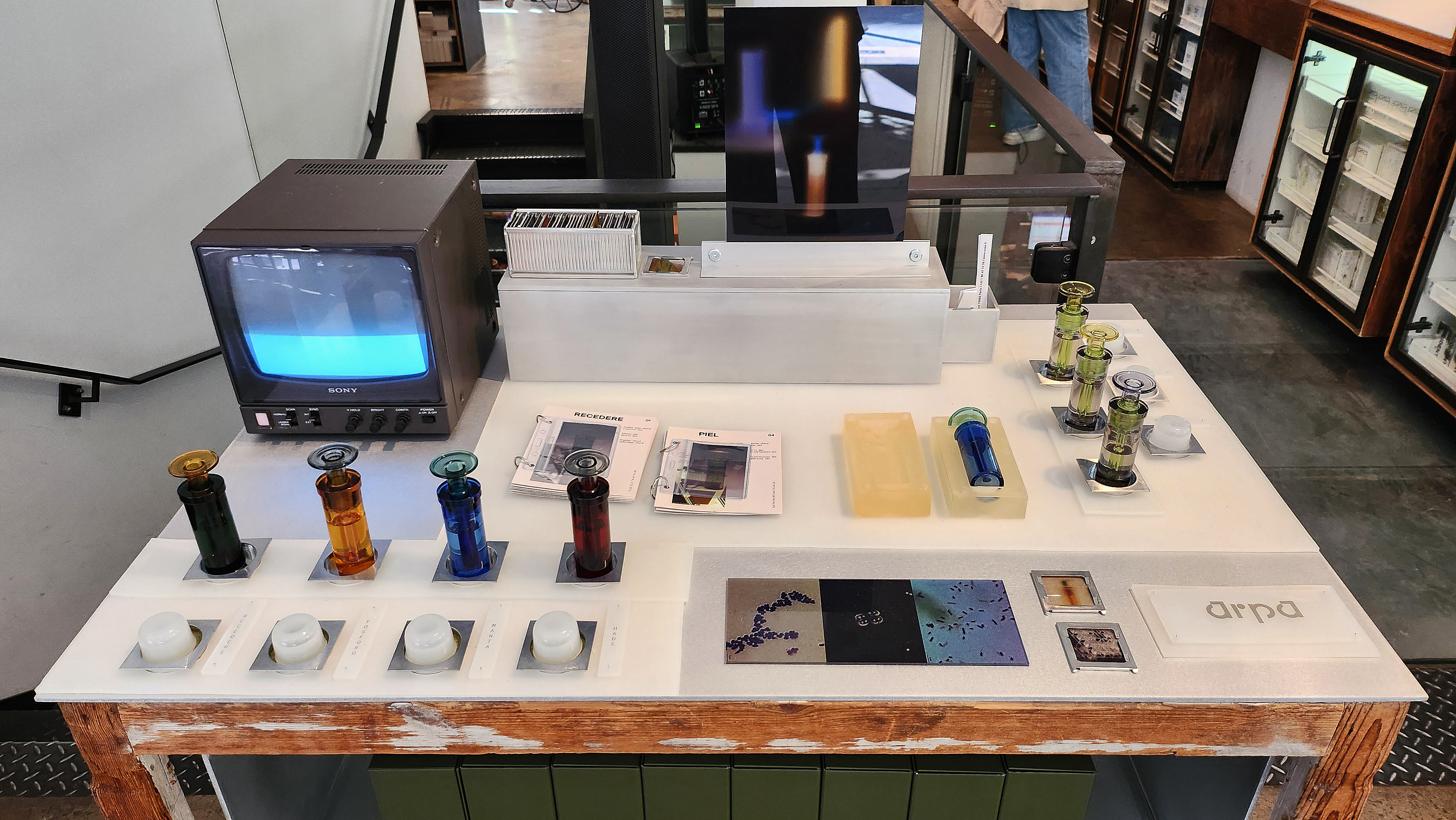 The first installation to greet people entering was by Arpa, a brand with which I was not familiar. Bottles that look like lab equipment always get plus points with me, and the setup looked like it was emphasizing the analog. On first sniff, the perfumes felt minimalistic, perhaps inspired by nature. Apparently they are all about synesthesia, and each perfume has a dedicated soundscape on their website.