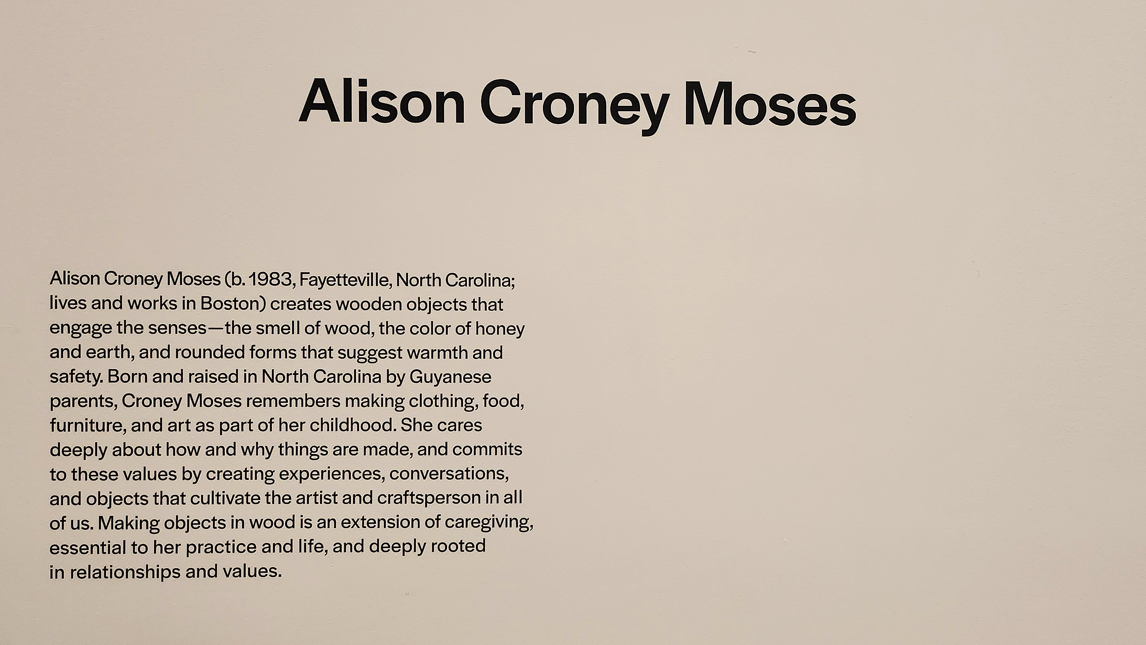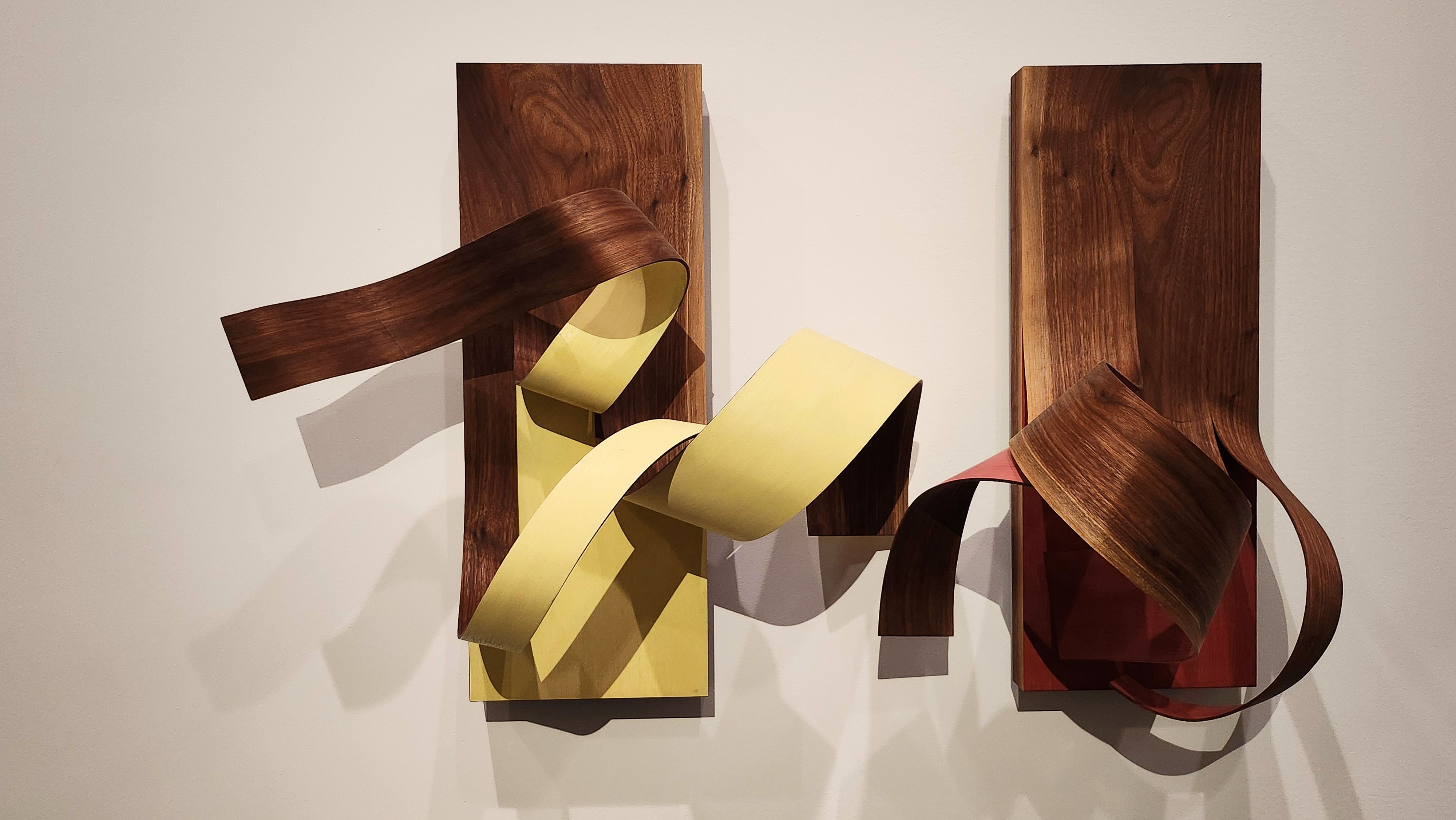 The objects were indeed visually engaging, but lines were drawn on the floor to keep visitors from getting too close. I managed to lean forward and quickly sniff the ones that were mounted on the wall, but could not detect any wood aromas.